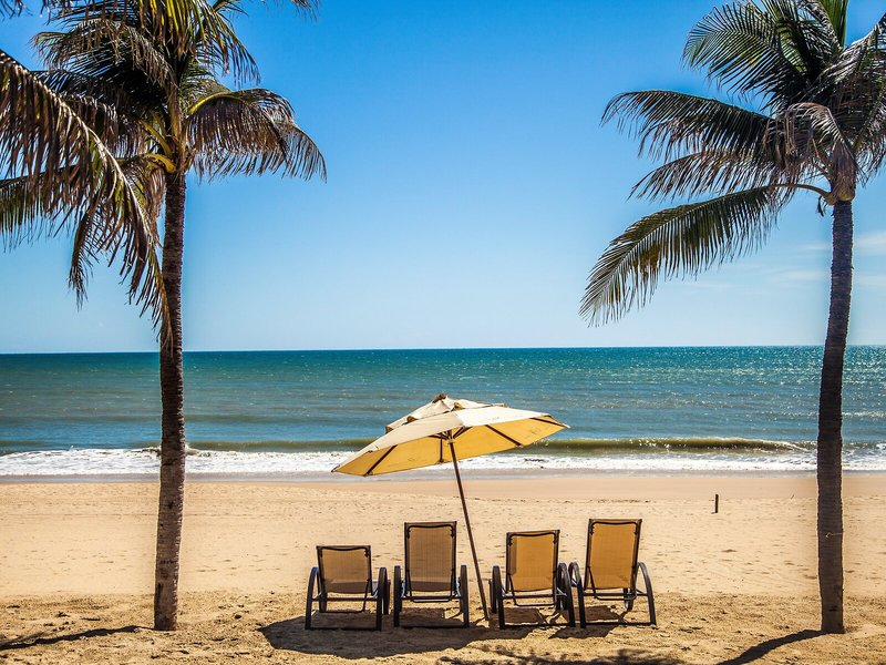 - Pláž: slnečníky na pláži, ležadlá na pláži