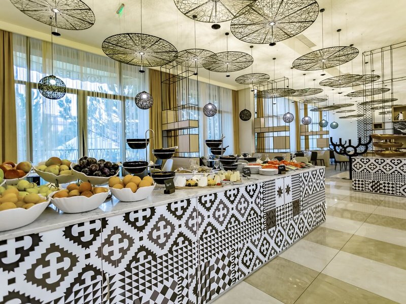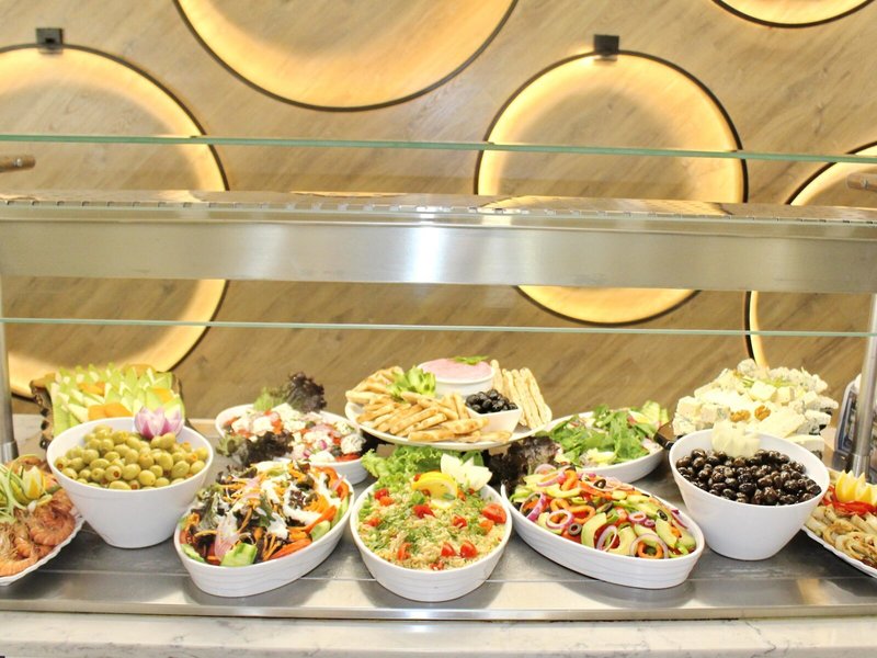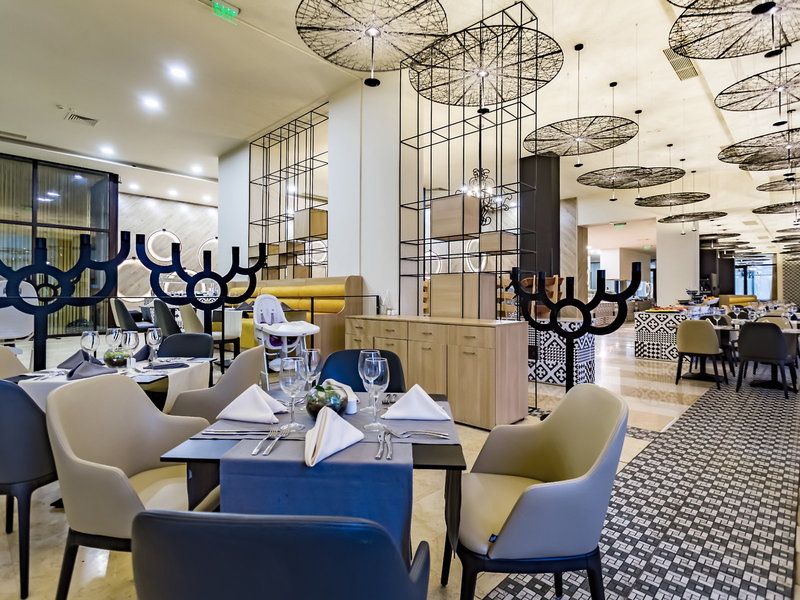 - Hauptrestaurant „Chef's Restaurant“: Küche: asiatisch, griechisch, international, italienisch, landestypisch, mediterran, mexikanisch, orientalisch, regional, türkisch, Fisch/Meeresfrüchte, Grillgerichte, Babynahrung: ohne Gebühr, Anfrage notwendig, Diätküche: ohne Gebühr, Anfrage notwendig, glutenfreie Gerichte: ohne Gebühr, Anfrage notwendig, Buffet, Showcooking, Reservierung nicht notwendig, ohne Gebühr, bei All Inclusive inklusive, Mai - September, täglich, klimatisierbar, Kinderhochstuhl, angemessene Kleidung erwünscht