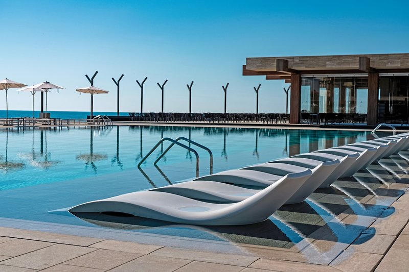 Najnovší hotel od renomovanej a obľúbenej HVD Group sa nachádza priamo na krásnej pláži s jemným pieskom a mierne sa zvažujúcou. Zaujme mimoriadnou architektúrou a priestrannosťou