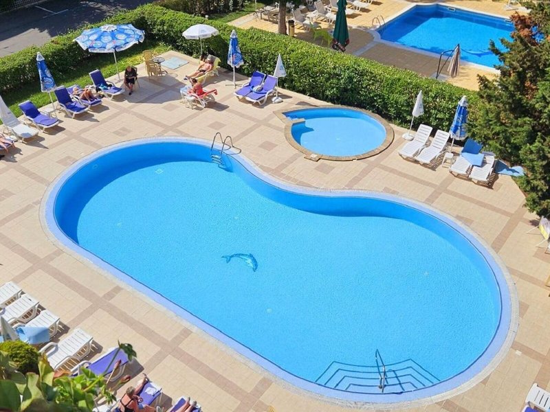 - Bazény: Detský bazén, vonkajší bazén, slnečníky pri bazéne, ležadlá pri bazéne