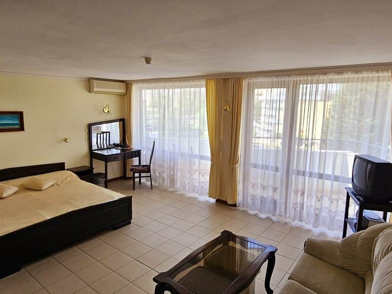 Lage & Umgebung Das Hotel im Grünen befindet sich ungefähr 150 m vom Sandstrand entfernt in einer der schönsten Lagen der Umgebung. Haltestellen der öffentlichen Verkehrsmittel sind nur einen Katzensprung entfernt. Zum Flughafen Burgas sind es etwa 30 km und zum Flughafen Varna rund 110 km.