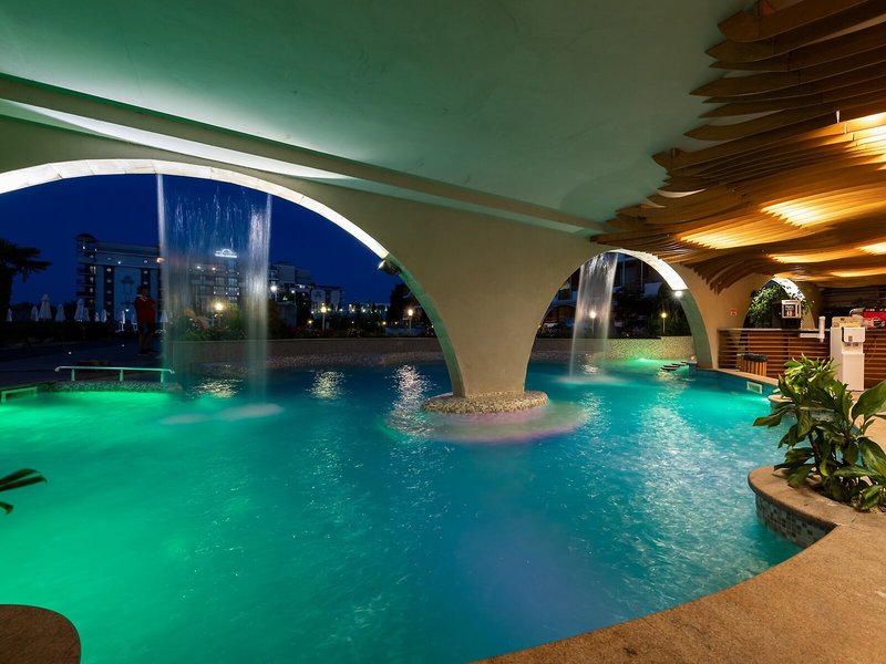 Šport a fitnes: Okrem vnútorných a vonkajších bazénov je k dispozícii aj detská plavecká zóna. Hostia si užijú rozmanitú vodnú zábavu, či už ide o čistý relax vo vírivke, zábavu na tobogáne alebo osviežujúce nápoje v bare pri bazéne. Na slnečnej terase sú k dispozícii ležadlá a slnečníky. Hotel ponúka možnosti vonkajšieho športovania, ako je cyklistika/horská cyklistika, tenis, plážový volejbal a basketbal. Hotelový program vodných športov zahŕňa vodné lyžovanie, windsurfing, jazdu na vodných bicykloch, jazdu na banánovom člne, kajakovanie, vodný aerobik a aqua fitness. Hotel ponúka rôzne možnosti vnútorného športovania vrátane posilňovne, stolného tenisu, bedmintonu, šípok a aerobiku. Za poplatok si hostia môžu zahrať aj biliard. Wellness možnosti zahŕňajú kúpele, saunu, hammam a talasoterapeutické procedúry. Za príplatok si hostia môžu dopriať aj masáže. Zábavný program, detský klub, mini diskotéka a diskotéka zabezpečia čo najlepší voľný čas.