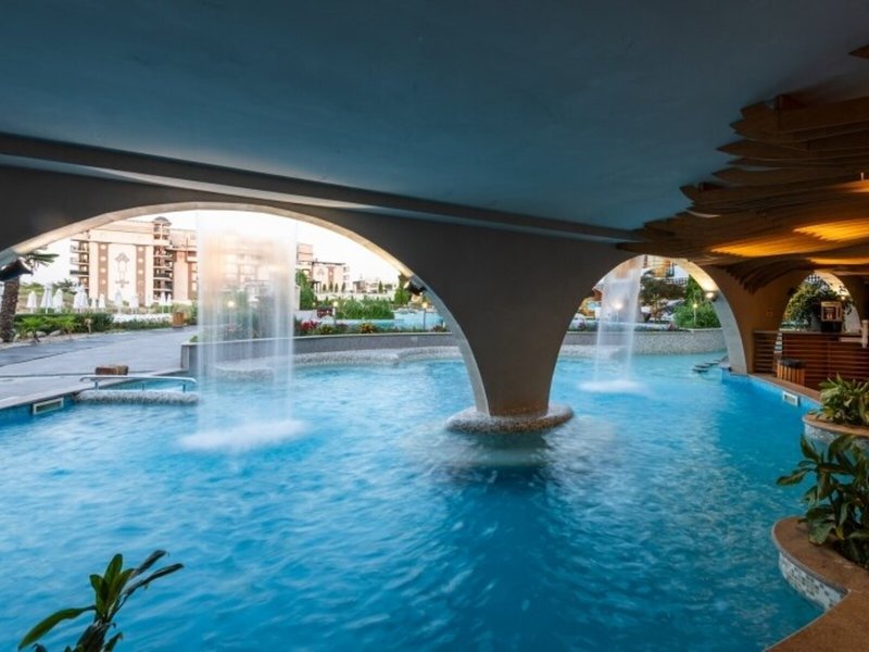 - Bazény: detský bazén, vnútorný bazén, vonkajší bazén, slnečníky pri bazéne, ležadlá pri bazéne, tobogán