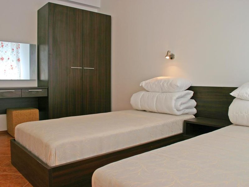 So wohnen Sie: In den Zimmern gibt es eine Klimaanlage und eine Heizung. In den meisten Zimmern ist ein Balkon vorhanden. Die Zimmer verfügen über ein Doppelbett und ein Sofabett. Es sind separate Schlafzimmer vorhanden. Kinderbetten für die jüngsten Gäste sind ebenso vorhanden. Eine komplett ausgestattete Kochnische mit einem Kühlschrank, einem Herd, einer Mikrowelle, einer Tee-/Kaffeemaschine und einem Backofen sowie allen Utensilien gehört ebenfalls zum Standard. Ein Bügelset ist für den zusätzlichen Komfort der Gäste verfügbar. Darüber hinaus sind ein Telefon, ein TV-Gerät und WiFi (ohne Gebühr) vorhanden. Die Badezimmer sind ausgestattet mit einer Dusche und einer Badewanne. Das Haus bietet Familien- und Nichtraucherzimmer.