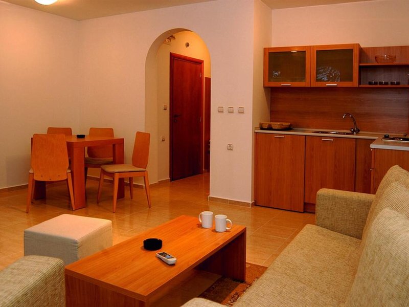 Vaše ubytovanie: Izby sú vybavené klimatizáciou a kúrením. Väčšina izieb má balkón. Izby sú vybavené manželskou posteľou a rozkladacou pohovkou. K dispozícii sú samostatné spálne. Pre najmenších hostí sú k dispozícii detské postieľky. Štandardom je plne vybavený kuchynský kút s chladničkou, sporákom, mikrovlnnou rúrou, zariadením na prípravu čaju/kávy, rúrou a všetkým potrebným riadom. Pre pohodlie hostí je k dispozícii žehliaca súprava. K dispozícii je aj telefón, TV a bezplatné Wi-Fi pripojenie na internet. Kúpeľne sú vybavené sprchovacím kútom a vaňou. Hotel ponúka rodinné a nefajčiarske izby.