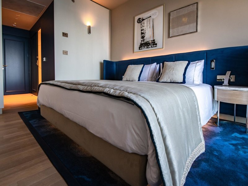 luxuriöse Zimmer mit Akzenten versehen, die von der azurblauen Adria inspiriert sind. erstklassige