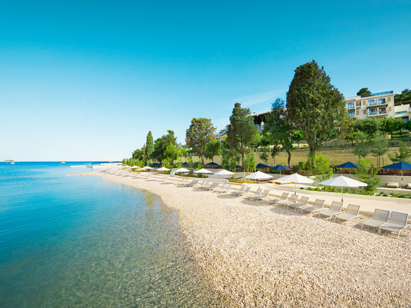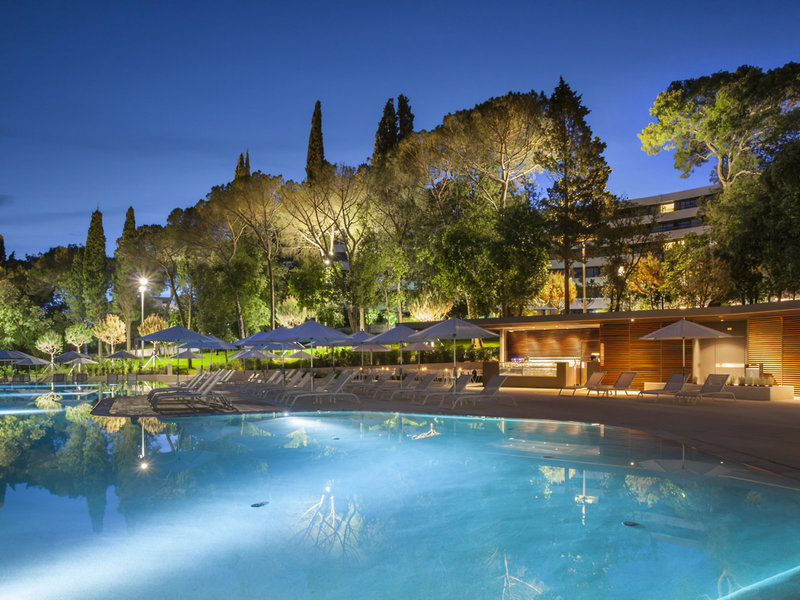 Poloha a okolie: Hotel sa nachádza na pokojnom mieste na okraji mesta, obklopený krásnou vegetáciou vedľa lesoparku Zlatni Rt. Promenáda popri kamienkovej pláži "Mulini Beach" s výhľadom na krištáľovo čisté more v zálive Lone je vzdialená približne 150 metrov. Centrum starého mesta Rovinj a prístav sú vzdialené približne 1,5 km.