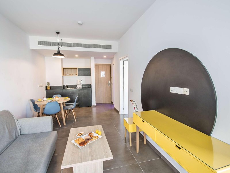 So wohnen Sie: Für angenehmes Raumklima in den Zimmern sorgen eine Klimaanlage und eine Heizung. Auf dem Balkon oder der privaten Terrasse der meisten Zimmer können die Gäste entspannen und den Blick auf das Meer genießen. Die Zimmer verfügen über ein Doppelbett oder ein Sofabett. Es gibt separate Schlafzimmer. Zustellbetten können angefordert werden. Außerdem sind ein Safe, eine Minibar und ein Schreibtisch verfügbar. In der Kochnische befinden sich ein Kühlschrank und eine Tee-/Kaffeemaschine. Ein Bügelset ist für den zusätzlichen Komfort der Gäste verfügbar. Darüber hinaus sind ein Telefon, ein TV-Gerät mit Satellitenempfang und Pay-per-View-Option, ein Radio und WiFi vorhanden. Im Badezimmer, mit einer Dusche und einer Badewanne ausgestattet, stehen für die Gäste ein Haartrockner und ein Telefon bereit. Für besonderen Komfort in den Badezimmern sorgt eine Auswahl an Handtüchern. Das Hotel bietet Familien- und Nichtraucherzimmer.