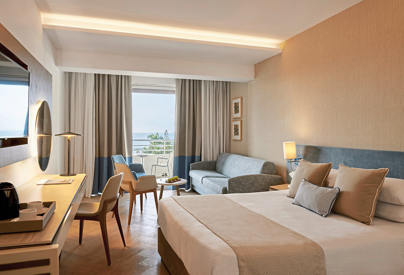 - 31-35 m², dvojlôžková izba, pre dospelých od 16 rokov, prémiová, výhľad na more, výhľad na bazén, zrekonštruovaná (2022), kombinovaná obývacia izba/spálňa, posedenie, manželské postele (1 manželská posteľ alebo 2 samostatné postele), vaňa, WC, župan, papuče, sušič vlasov, klimatizácia, kúrenie, minibar (za poplatok), trezor, TV, rýchlovarná kanvica, káva/čaj, balkón alebo terasa (zariadená), 24-hodinová izbová služba, kvalitné toaletné potreby, ovocný kôš na izbe pri príchode