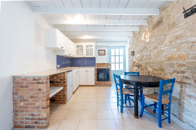 Vybavenie: Hrubé múry, malé okná, kamenné či drevené schody domov sú typické pre pôvodnú ostrovnú architektúru. Na verande, terase alebo v záhrade môžete kedykoľvek počas dňa relaxovať s nápojom alebo knihou. Wi-Fi je súčasťou všetkých apartmánov. V blízkosti sa nachádza bazén s ležadlami a slnečníkmi (maximálne asi 7 minút chôdze). Použitie je zahrnuté pre našich hostí.