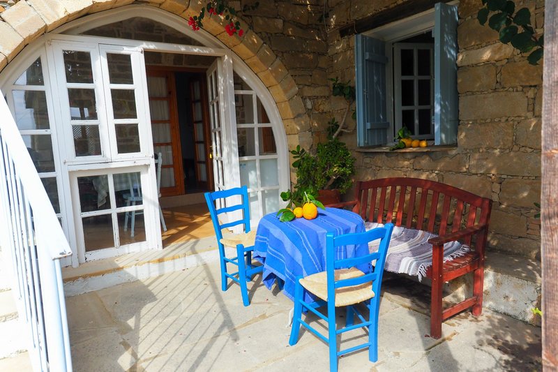 Ausstattung: Die dicken Mauern, kleinen Fenster, Stein- oder Holztreppen der Häuser sind typisch für die ursprüngliche Inselarchitektur. Auf Ihrer Veranda, Terrasse oder im Garten können Sie mit einem Drink oder einem Buch zu jeder Zeit des Tages entspannen. Wi-Fi ist in allen Appartements inklusive. In der Nähe (maximal ca. 7 Minuten zu Fuß) befindet sich ein Swimmingpool mit Sonnenliegen und -schirmen. Die Nutzung ist für unsere Gäste inklusive.
