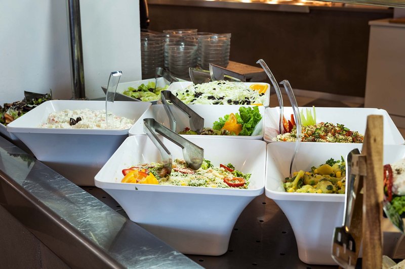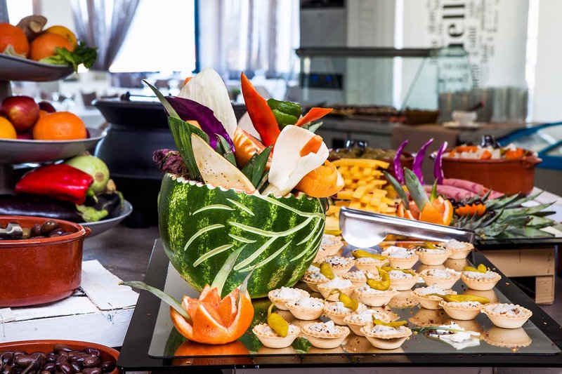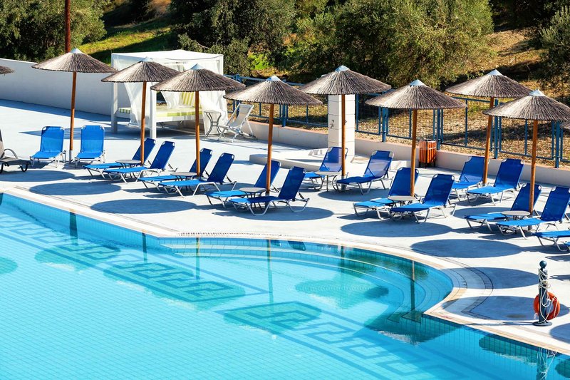 All Inclusive: All Inclusive: Reichhaltiges Frühstücksbuffet von 7-10:30 Uhr (7-7:30 Uhr nur kalte Platten) inklusive Kaffee (Filter, Cappuccino, Espresso), heißer Schokolade, Tee und Säften. Das Mittagessen (13-14 Uhr) und das Abendessen (18:30-21 Uhr) wird in reichhaltiger Buffetform angeboten. Zum Frühstück und Abendessen wird das Buffet durch Show-Cooking ergänzt, ein Mal pro Woche findet ein Themenabend statt. Während der Mahlzeiten sind Ouzo, Weiß- und Rotwein im Glas, Bier vom Fass, Brandy, Softgetränke sowie Wasser (mit und ohne Kohlensäure) inklusive, die Getränke werden mittags und abends am Tisch serviert.