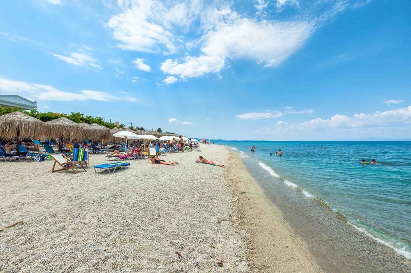 Poloha: Tento hotel, obľúbený u párov aj rodín, sa nachádza v pôvabnom, zelenom prostredí. Jeho poloha na svahu na okraji letoviska Pefkochori ponúka úchvatný výhľad na more. Centrum mesta je vzdialené približne 500 metrov a obľúbená dlhá piesočnato-kamienková pláž je vzdialená asi 800 metrov. Kyvadlový autobus na pláž premáva niekoľkokrát denne, šesť dní v týždni. Lehátka a slnečníky si tam môžete prenajať (od miestneho poskytovateľa). Letisko v Solúne je vzdialené približne 95 kilometrov.