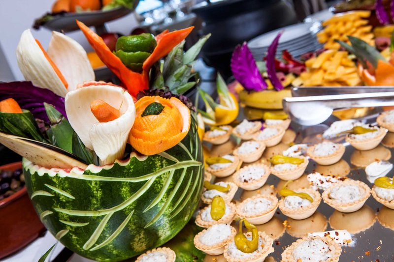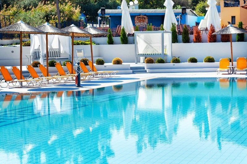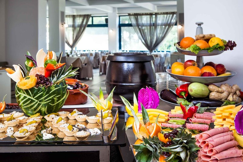 All Inclusive: Bohaté raňajky formou bufetu od 7:00 do 10:30 (iba studené taniere od 7:30 do 7:30) vrátane kávy (filter, cappuccino, espresso), horúcej čokolády, čaju a džúsov. Obed (13:00 - 14:00) a večera (18:30 - 21:00) sú podávané formou bohatého bufetu. Bufet je doplnený o show cooking na raňajky a večeru a raz týždenne sa koná tematický večer. Počas jedla je zahrnuté ouzo, biele a červené víno v pohári, čapované pivo, brandy, nealko a voda (perlivá aj neperlivá), nápoje sa podávajú pri stole pri obede a večeri. Káva a čaj sú v bare k dispozícii od 9.00 hod., od 10.00 do 23.00 hod. môžu naši hostia dostať čapované pivo, biele a červené víno v pohári, ouzo, gin, vodku, whisky, tequilu a brandy. K dispozícii je aj výber nealkoholických nápojov, jablkový a pomarančový džús, voda (perlivá a nesýtená), ako aj long drinky, kokteil dňa a detský kokteil bez alkoholu. Koláče, občerstvenie a zmrzlina sa podávajú od 14.00 do 17.00 hod. Pre využitie služieb all inclusive je povinné nosenie náramku, z bezpečnostných dôvodov sa nápoje v areáli bazéna podávajú v plastových pohároch.