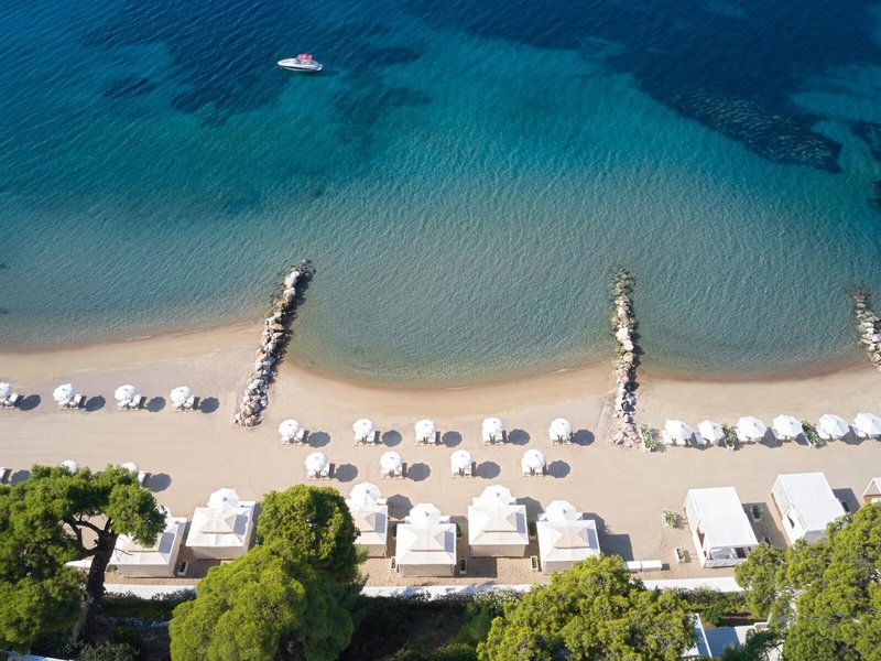 Poloha a okolie Elegantný hotel, ktorý osobne prevádzkuje rodina majiteľov, sa nachádza na druhom prste polostrova Chalkidiki. Sedem dvojposchodových budov a elegantných víl, obklopených stredomorskými borovicami, sviežimi záhradami, bielymi piesočnatými plážami a tyrkysovým morom, sa rozprestiera pod azúrovou oblohou. Hotel je zasadený do 6 akrov krásne upravených záhrad, podobných parku, a ponúka nádherný výhľad na krištáľovo čistú vodu a prírodné krásy, ktoré ho obklopujú. Oddýchnuť si môžete na tienistých terasách nad plážou, v jednej z reštaurácií alebo vo večernom bare. Nachádza sa medzi 2 tradičnými dedinami Metamorfosis (cca 2 km chôdze) a Nikiti (cca 4 km).