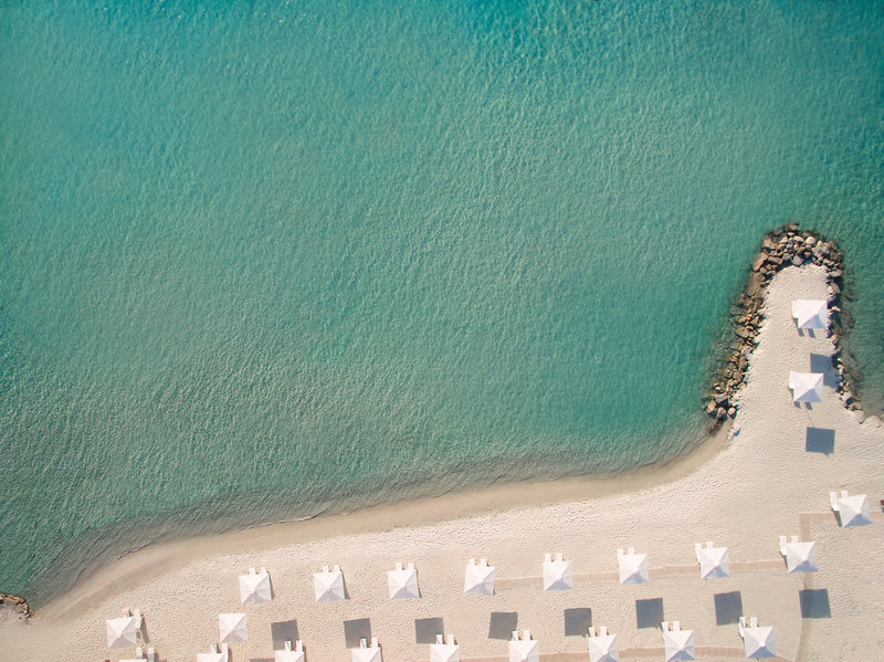 - Sandstrand: flach abfallend, gehört zur Anlage, Sonnenschirme, Liegen, Strandtuch/Badetuch