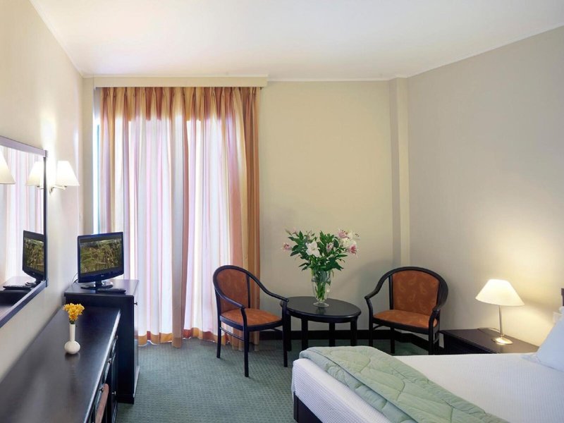 Essen & Trinken: Die gastronomischen Einrichtungen umfassen einen Speiseraum, einen Frühstückssaal, ein Café und eine Bar. Verschiedene Spezialitäten erwarten die Gäste in einem Nichtraucherrestaurant mit Klimaanlage. Das Hotel bietet als buchbare Verpflegungsleistungen Übernachtung inkl. Frühstück, Halbpension und Vollpension. Ein kontinentales Buffetfrühstück garantiert einen guten Start in den Tag. Zum Mittagessen und Abendessen stehen verschiedene Gerichte à la carte zur Auswahl. Diätgerichte und vegetarische Gerichte werden auf Wunsch zubereitet. Darüber hinaus stellt das Haus spezielle Verpflegungsangebote bereit.