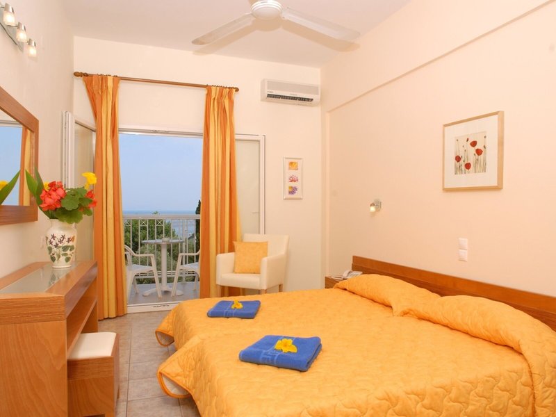 - Rodinná izba typ 1 (FZX1), v hlavnej budove, výhľad na more, bočný výhľad na more, cca 32 m², posledná kompletná rekonštrukcia v roku 2008, celkový počet izieb v tomto type izby: 2, rozloženie: pozostáva z 2 dvojlôžkových izieb izby so spojovacími dverami, 2 spálne, 4 samostatné lôžka, detská postieľka : bez poplatku, klimatizácia: cca 7 EUR na deň, individuálne nastaviteľná, studená, teplá, trezor: cca 14 EUR na týždeň, TV: satelit, upratovanie služba: bez poplatku, sprcha, WC, fén, balkón: s posedením