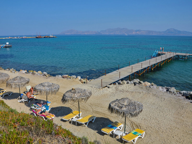 Poloha a okolie Hotelový komplex sa nachádza v tichom prostredí priamo na jemnej piesočnatej pláži, cca 150 m od rybárskej dedinky Mastichari s tavernami a obchodmi. Pláž je piesková. Časť je chránená balvanmi lámajúcimi vlny, do mora je vstup cez dve móla. Na pravej strane pláže môžete plávať priamo do mora, pretože tu nie sú žiadne balvany. Mesto Kos je vzdialené asi 20 km. Priamo pred hotelom je autobusová zastávka. Čas prenosu: približne 30 minút.