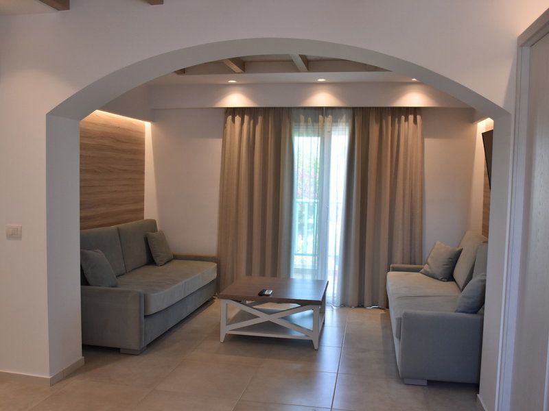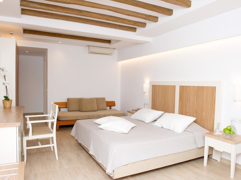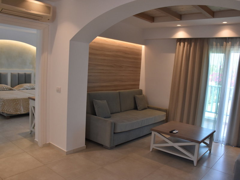 - Familysuite (APX1), Suite, Nichtraucherzimmer, im Nebengebäude, Gartenblick, ca. 44 m², letzte Komplettrenovierung 2019, Gesamtanzahl der Räume in diesem Zimmertyp: 2, Aufteilung wie folgt: kombiniertes Wohn-/Schlafzimmer, 1 Schlafzimmer, 2 Einzelbetten (90x190cm), 2 Schlafsofas (90x190cm), 1 Zustellbett (80x180cm), Babybett: ohne Gebühr, Anfrage notwendig, Moskitonetz, Klimaanlage: ohne Gebühr, Mai - Oktober, individuell regelbar, kalt, warm, Fußboden: Fliesenboden, Safe: ohne Gebühr, Sofa, Schreibtisch, Kochnische, Kühlschrank: ohne Gebühr, Mikrowelle, Espressomaschine, Wasserkocher, Esstisch, Minibar: Wasser: ohne Gebühr, Telefon, Internet: WLAN/WiFi: ohne Gebühr, Fernseher: Flatscreen, im Wohnbereich, im Schlafzimmer, deutsches Programm, Sat-TV, Reinigungsservice: täglich, ohne Gebühr, Dusche, WC, Föhn, Balkon oder Terrasse: mit Sitzgelegenheit