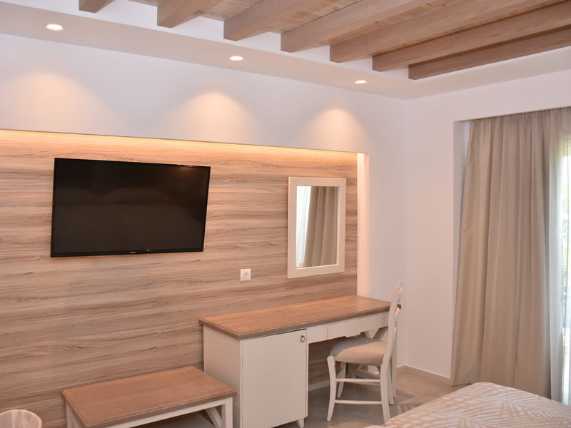 - Dvojlôžková izba s výhľadom na more (DZM1), dvojlôžková izba, v prístavbe, morská strana, výhľad na more, cca 24 m², posledná kompletná rekonštrukcia 2019, celkový počet izieb tohto typu: 1, rozloženie: 1 spálňa, 2 samostatné postele (90x190cm), detská postieľka: zdarma, na požiadanie, moskytiéra, klimatizácia: zadarmo, apríl - október, individuálne ovládaná, chladenie, teplo, podlaha: dlažba, trezor: zadarmo, písací stôl, chladnička: zadarmo, minibar: voda: zadarmo, telefón, internet: Wi-Fi: zadarmo, televízor: plochá obrazovka, v spálni, nemecké kanály, satelitná TV, upratovacia služba: denne, zadarmo, sprcha, WC, fén, balkón alebo terasa: s posedením