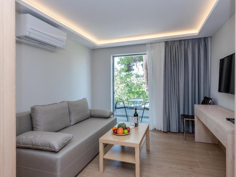 Vaše ubytovanie: Izby zahŕňajú obývaciu izbu, kuchyňu a kúpeľňu, zatiaľ čo klimatizácia a kúrenie zabezpečujú príjemnú klímu v miestnosti. Hostia môžu relaxovať a vychutnávať si výhľad na more na balkóne alebo súkromnej terase väčšiny izieb. Izby sú vybavené posteľou queen a rozkladacou pohovkou. K dispozícii sú samostatné spálne. Prístelky je možné vyžiadať. K dispozícii je aj trezor, minibar a písací stôl. Kuchynka je vybavená príslušenstvom na prípravu čaju/kávy. Pre väčšie pohodlie hostí je k dispozícii súprava na žehlenie. K dispozícii je aj telefón, satelitná TV, rádio a WiFi. V kúpeľni so sprchovacím kútom a vaňou máte k dispozícii sušič vlasov a telefón. Kozmetické výrobky poskytujú extra pohodlie v kúpeľniach. K dispozícii sú aj bezbariérové izby s bezbariérovou kúpeľňou. Hotel ponúka rodinné a nefajčiarske izby.