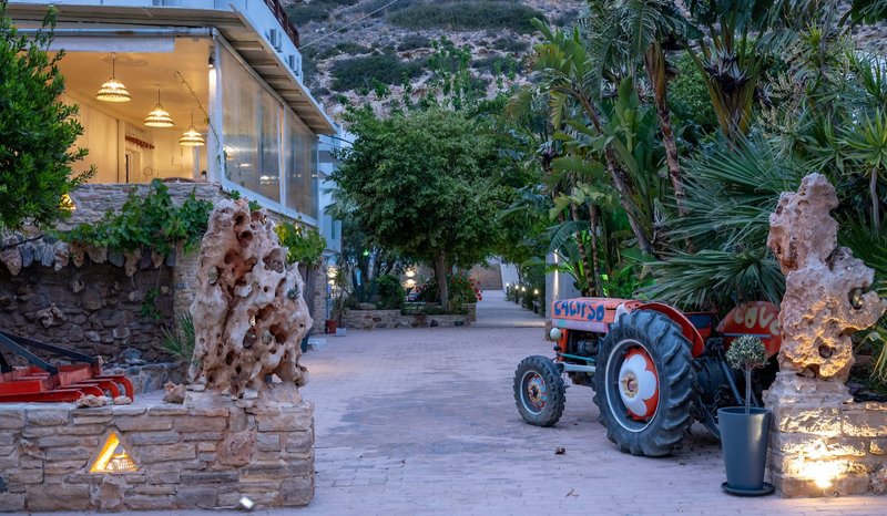Príchod autom: Z letiska Heraklion sa pokračujte po štátnej diaľnici (Nová cesta) smerom na Heraklion. Zjazdite tretím výjazdom smerom na Moires/Heraklion. Na konci výjazdu odbočte doprava smerom na Moires a prejdite popod viadukt. Prejdete cez Agia Varvara a potom cesta postupne klesá do nížiny Messara, prechádza cez Agia Deka a Gortyna, kým sa nedostanete do Moires. Na začiatku Moires odbočte na križovatke doľava smerom na pláž Matala/Komos. Na križovatke v centre mesta odbočte opäť doľava. Po približne 3 km odbočte doprava smerom na pláž Matala/Komos/Pitsidia. Hotel sa nachádza na pravej strane cesty krátko pred centrom Mataly.