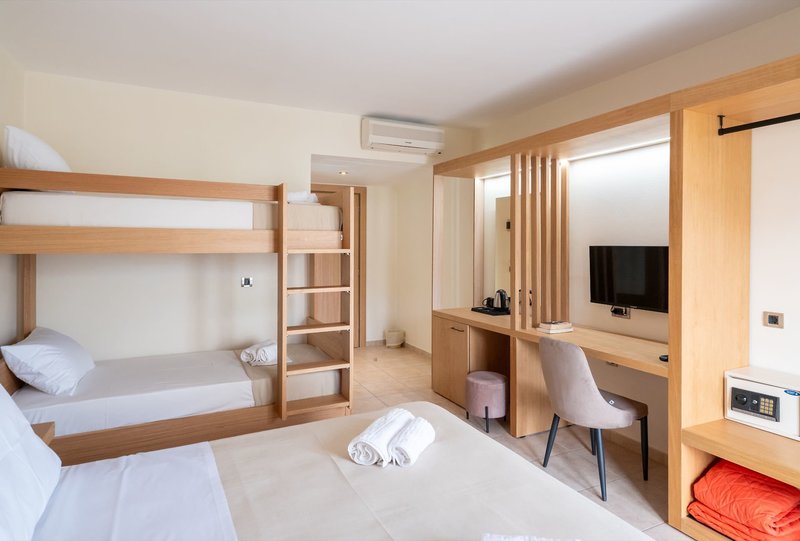 Ausstattung: Die Anlage wurde zum Sommer 2025 renoviert und verfügt über 42 Doppel- und 8 Familienzimmer, verteilt auf 3 Gebäude. Der Urlaub beginnt in einen modernen Empfangsbereich mit 24-h-Rezeption. Zudem steht eine Lounge, ein Restaurant, eine Aufenthaltsbereich, eine Bar sowie eine TV-Ecke zur Verfügung. Wi-Fi ist in der gesamten Anlage inklusive. Im schönen Außenbereich lädt ein Swimmingpool mit Sonnenterrasse und eine Poolbar zum Relaxen ein. Liegen und Schirme sind am Pool inklusive und am Strand gegen Gebühr. Badehandtücher sind gegen Gebühr erhältlich.