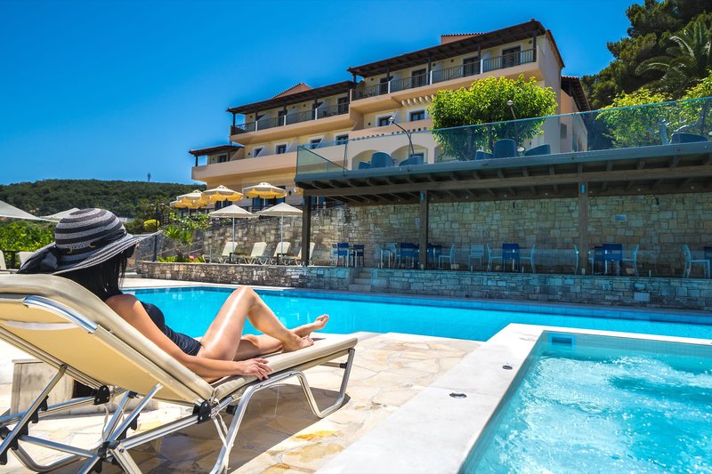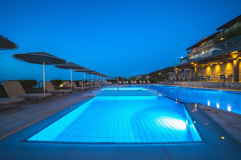 Vybavenie: Tento krásny a moderný hotel (možnosť rezervácie s deťmi od 11 rokov) s celkovým počtom 46 izieb ponúka 24-hodinovú recepciu, vstupnú halu, Wi-Fi (zahrnuté vo verejných priestoroch a izbách), salónik s terasou, hlavnú reštauráciu a hlavný bar s terasou. Dobre udržiavaná vonkajšia plocha zahŕňa krásnu záhradu, sladkovodný bazén s vírivkou s rozlohou 20 m², slnečnú terasu a snack bar pri bazéne. Lehátka s pohodlnými vankúšmi a slnečníkmi sú k dispozícii pri bazéne zadarmo. Lehátka a slnečníky sú k dispozícii za poplatok na pláži.