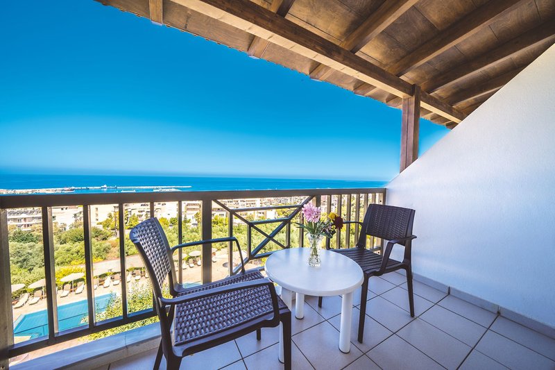 Juniorsuite Comfort seitl. MB oder MB: Bei gleicher Ausstattung wie die Doppelzimmer liegen diese in einem der Nebengebäude, sind etwas geräumiger mit Klimaanlage, Wasserkocher, Kaffee/Teestation, Telefon, Wi-Fi (inklusive), Minikühlschrank, Flatscreen Sat.-TV, Safe (inklusive), Bad/WC sowie Balkon oder Terrasse (J2M).