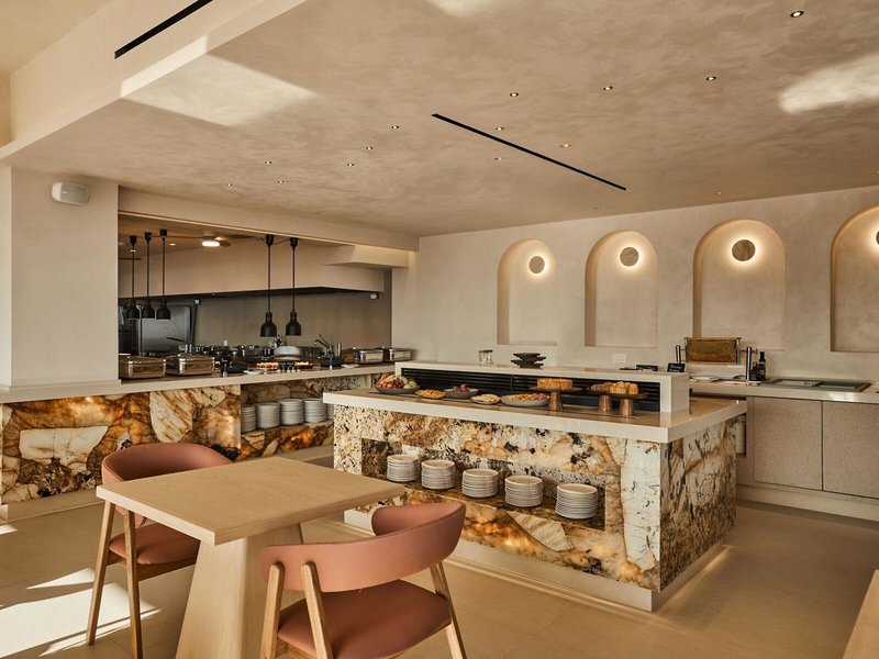 - Hauptrestaurant „Keras“: Küche: griechisch, international, mediterran, regional, Fisch/Meeresfrüchte, glutenfreie Gerichte, lactosefreie Gerichte, vegetarische Gerichte, vegane Gerichte, Buffet, Showcooking, klimatisierbar, mit Terrasse