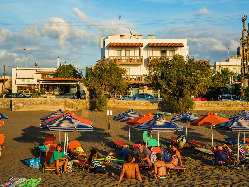 Lage & Umgebung Nur durch die Straße vom langen, schönen, flach abfallenden Sandstrand getrennt. In unmittelbarer Umgebung Minimärkte und Tavernen, zum Ortszentrum ca. 300 m.
