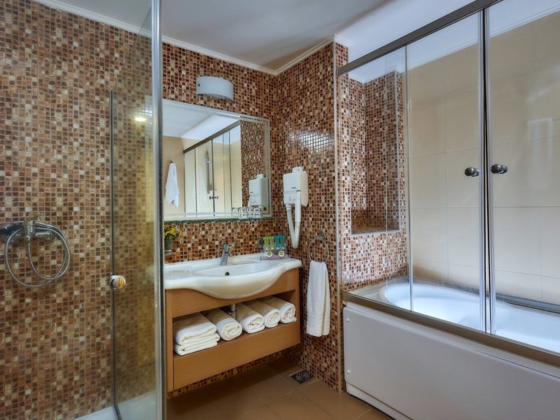 - Dvojlôžková izba s výhľadom na more (DZM1), dvojlôžková izba, nefajčiarska izba, v hlavnej budove, morská strana, výhľad na more, cca 25 - 28 m², posledná kompletná rekonštrukcia v roku 2011, posledná čiastočná rekonštrukcia v roku 2016, celkový počet izieb. v tomto type izby: 1, rozloženie takto: kombinovaná obývacia izba/spálňa, 2 samostatné postele, 1 posteľ king, detská postieľka: bez poplatku, klimatizácia: bez poplatku, individuálne nastaviteľná, studená, teplá, podlaha: laminát, trezor : za poplatok, písací stôl, žehlička, žehliaca doska, chladnička: bez poplatku, telefón, Internet: WLAN/WiFi: zadarmo, televízia: v spálni, Deutsche Welle, satelitná TV, rádio, izbová služba: zadarmo, upratovacia služba: zdarma, vaňa alebo sprcha, vaňa s integrovanou vírivkou, WC, fén, balkón: s posedením