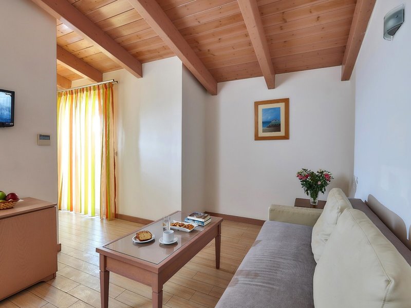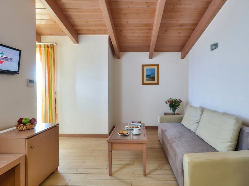 - Juniorsuite Typ (JSX1), Juniorsuite, im Hauptgebäude, Poolseite, Poolblick, Gartenblick, ca. 36 - 38 m², letzte Komplettrenovierung 2011, letzte Teilrenovierung 2016, Gesamtanzahl der Räume in diesem Zimmertyp: 2, Aufteilung wie folgt: 2 Schlafzimmer, 1 Queen Size Bett, 1 Schlafsofa, Babybett: ohne Gebühr, 1 Etagenbett, Klimaanlage: ohne Gebühr, individuell regelbar, kalt, warm, Fußboden: Laminat, Safe: gegen Gebühr, Sofa, Schreibtisch, Kühlschrank: ohne Gebühr, Telefon, Internet: WLAN/WiFi: ohne Gebühr, Fernseher: Flatscreen, im Schlafzimmer, deutsches Programm, Sat-TV, Roomservice: ohne Gebühr, Reinigungsservice: ohne Gebühr, Badewanne oder Dusche, Badewanne, WC, Föhn, Balkon: mit Sitzgelegenheit