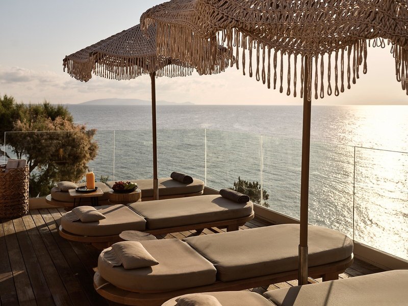- Pool „Pelagos Pool“: ab 16 Jahre, April - Oktober; wetterabhängig, ohne Gebühr, Outdoor, Meerwasser, Balinesische Betten, Daybeds, Liegestühle: ohne Gebühr, Sonnenschirme: ohne Gebühr