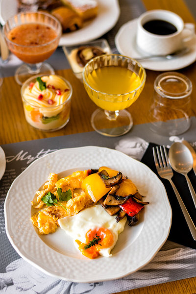 Jedlo a pitie: Kontinentálne raňajky formou bufetu zaručujú dobrý začiatok dňa.