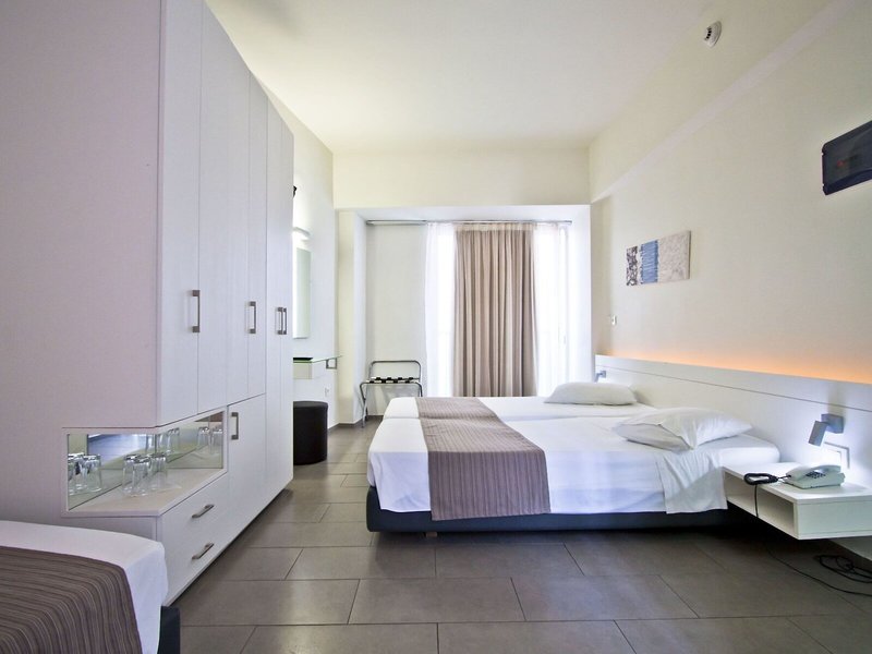 Lage & Umgebung Das Hotel liegt im Zentrum der Stadt Rhodos, im Norden der Insel. Der Strand ist etwa 250 m entfernt und bis zum Flughafen Rhodos sind es ca. 15 km.