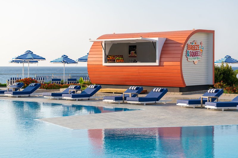 Die Snackbar “Breeze & Squeeze Healthy Bar” nahe des Hauptpools bietet von 11-17 Uhr eine Auswahl an kleinen Gerichten wie Sandwiches, Toast und Eiscreme sowie Smoothies und Früchte.
