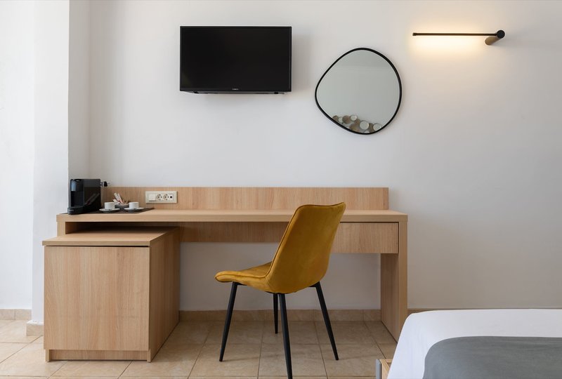 Premium Deluxe Doppelzimmer: Die voraussichtlich zum Sommer 2026 im 80's Style renovierten Doppelzimmer verfügen über ein Doppelbett, ein Badezimmer mit Dusche/WC, Föhn, Kosmetikspiegel, Pflegeprodukte, Slipper, 50" Sat.-TV, Klimaanlage, Safe, Telefon, Kaffee-/Teezubereiter (tägliche Auffüllung), Minikühlschrank (befüllt mit 2 Flaschen Wasser bei Ankunft), Willkommens-Präsent sowie einen möblierten Balkon oder Terrasse zur Gartenseite (DD2).