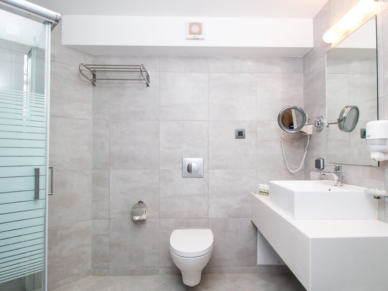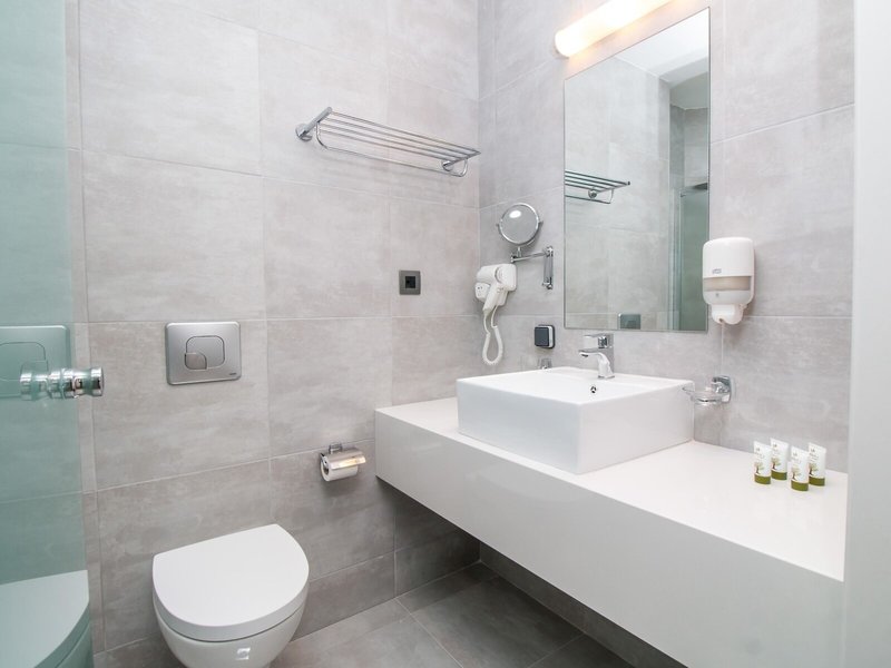 - Dvojlôžková izba (DZX1), dvojlôžková izba, nefajčiarska izba, minimálny vek v izbe: 0 rokov, v hlavnej budove, nová budova, výhľad na nádvorie, výhľad na mesto, cca 16 - 18 m², posledná kompletná rekonštrukcia 2021, posledná čiastočná rekonštrukcia 2023, celkový počet izieb v tomto type izby: 1, Rozdelenie takto: 1 spálňa, 2 samostatné postele (80x200cm), detská postieľka, klimatizácia: individuálne nastaviteľná, kúrenie: individuálne nastaviteľná, podlaha: dlažba, laminát, trezor , chladnička, kávovar/čajník, telefón, internet: WLAN/WiFi, TV: plochá obrazovka, v spálni, sprcha, WC, fén, kozmetické zrkadlo, balkón alebo terasa