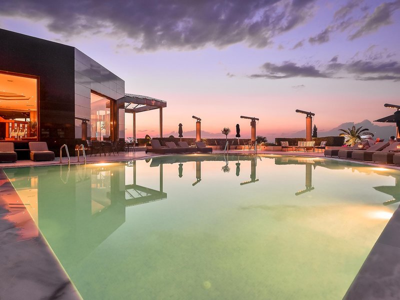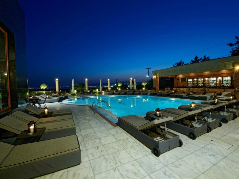 - Bazény: Vnútorný bazén, vonkajší bazén, slnečníky pri bazéne, ležadlá pri bazéne