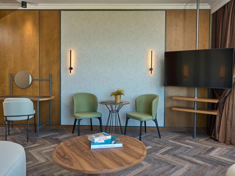 Ako sa ubytujete: Izby majú klimatizáciu a kúrenie. Hostia môžu relaxovať a vychutnávať si výhľad na more na balkóne alebo súkromnej terase väčšiny izieb. Izby majú posteľ veľkosti queen a rozkladaciu pohovku. Prístelky je možné vyžiadať. K dispozícii je aj trezor, minibar a pracovný stôl. K dispozícii je tiež chladnička a mini chladnička. Nechýba ani žehliaca súprava a lis na nohavice. K dispozícii je aj telefón, satelitná TV, rádio a WiFi. K vybaveniu izieb patria papuče. Kúpeľne sú vybavené sprchovacím kútom a vaňou. Na každodenné použitie je k dispozícii sušič vlasov, župany a telefón. Ako zvláštnosť si hostia môžu vychutnať kozmetické produkty a výber uterákov v kúpeľniach. Rezervovať je možné aj bezbariérové izby s bezbariérovými kúpeľňami. Hotel ponúka rodinné a nefajčiarske izby.