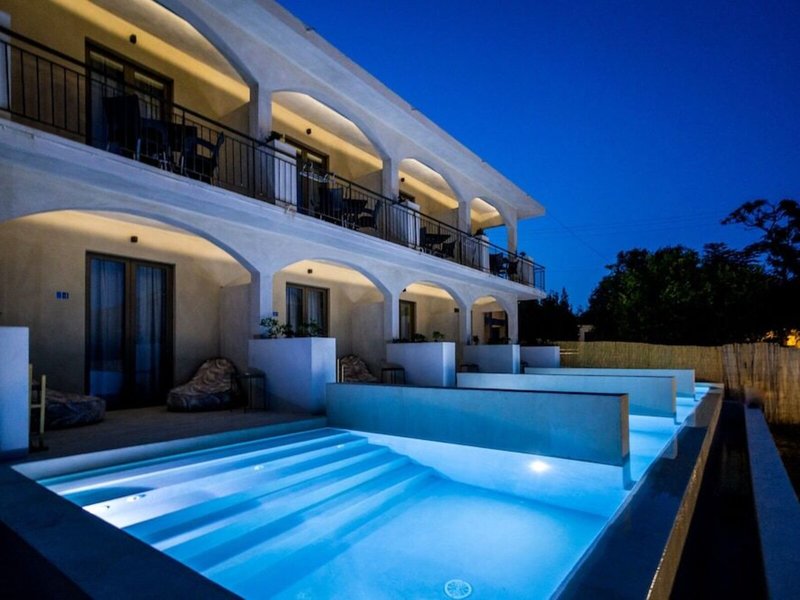 Poloha a okolie Tento apartmánový hotel vytvára dokonalú atmosféru pre dospelých, ktorí chcú na dovolenke súkromie a nachádza sa v meste Laganas.