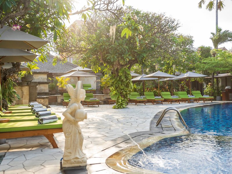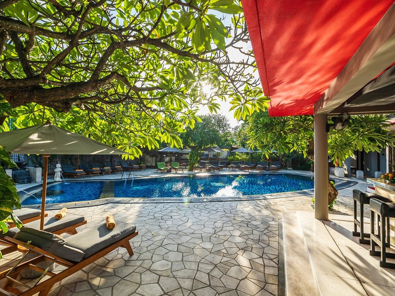 Lage & Umgebung Das Hotel liegt sehr günstig am berühmten langen Sandstrand von Kuta. Hier kann man wunderschöne Sonnenuntergänge und in der Umgebung das bekannte Nachtleben genießen. In rund 20 min erreicht man Denpasar mit dem Auto.
