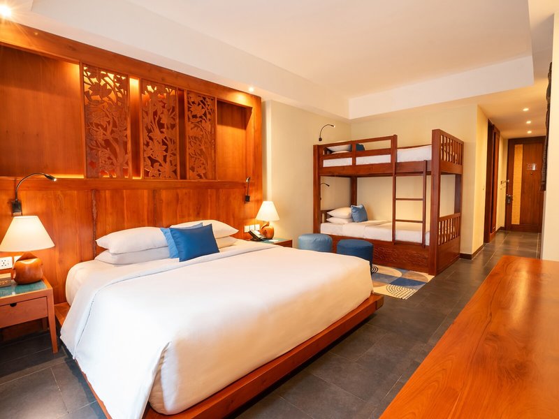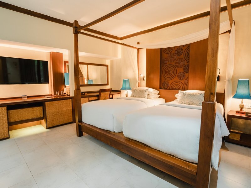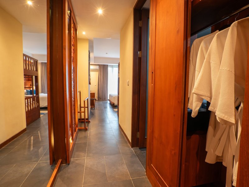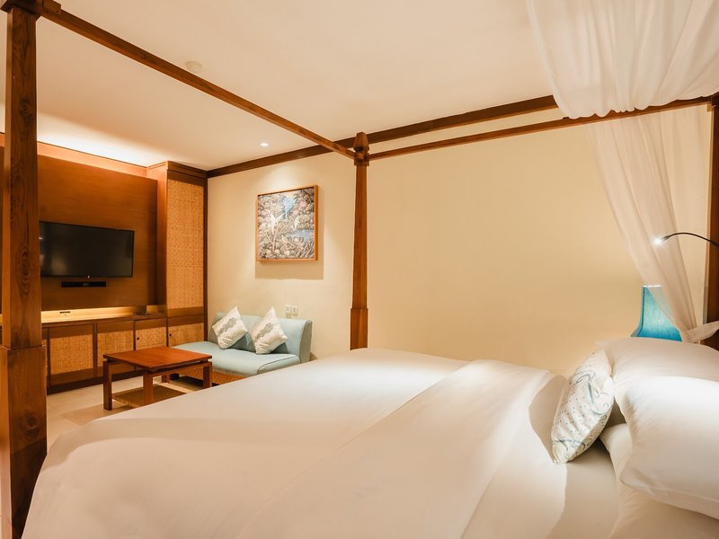 So wohnen Sie: Für angenehmes Raumklima in den Zimmern sorgt eine Klimaanlage. In den meisten Unterkünften genießen die Gäste von Balkon oder Terrasse einen Ausblick auf das Meer. Die Zimmer verfügen über ein Kingsizebett und ein Sofabett. Außerdem sind ein Safe und ein Schreibtisch verfügbar. Auch ein Minikühlschrank und eine Tee-/Kaffeemaschine sind vorhanden. Hinzu kommen ein Bügelset und eine Hosenpresse. Verschiedene Kommunikations- und Unterhaltungsmöglichkeiten werden durch die komfortable Ausstattung mit einem Direktwahltelefon, einem TV-Gerät, einem Radio, einem CD-Player, einem Steckdosenadapter, einem Wecker und WiFi (ohne Gebühr) gewährleistet. Zudem können die Gäste den Gute-Nacht-Service in Anspruch nehmen. Zu den Vorzügen der Zimmer gehören Hausschuhe. Die Badezimmer verfügen über eine Dusche und eine Badewanne. Für den täglichen Gebrauch stehen ein Haartrockner, ein Kosmetikspiegel und Bademäntel zur Verfügung. Als Besonderheit genießen die Gäste in den Badezimmern Kosmetikartikel und eine Auswahl an Handtüchern. Buchbar sind rollstuhlgerechte Zimmer. Das Resort bietet Familien- und Nichtraucherzimmer.