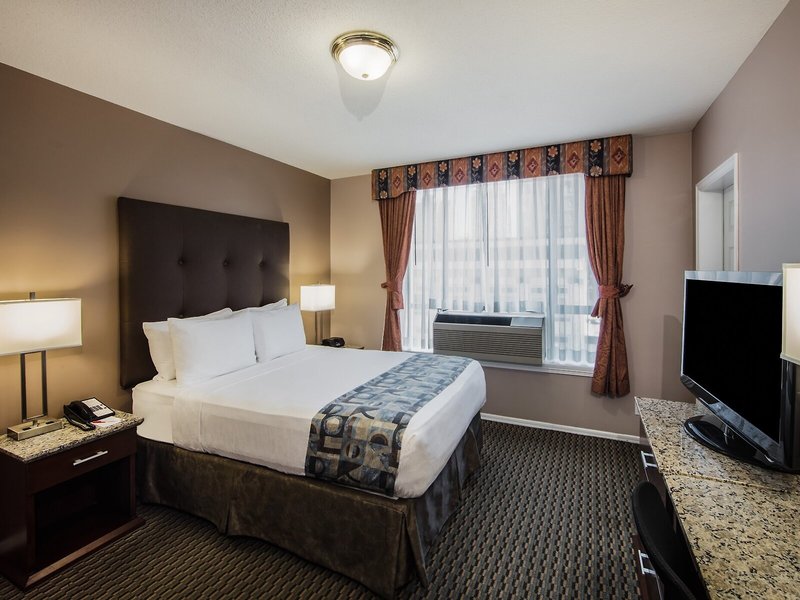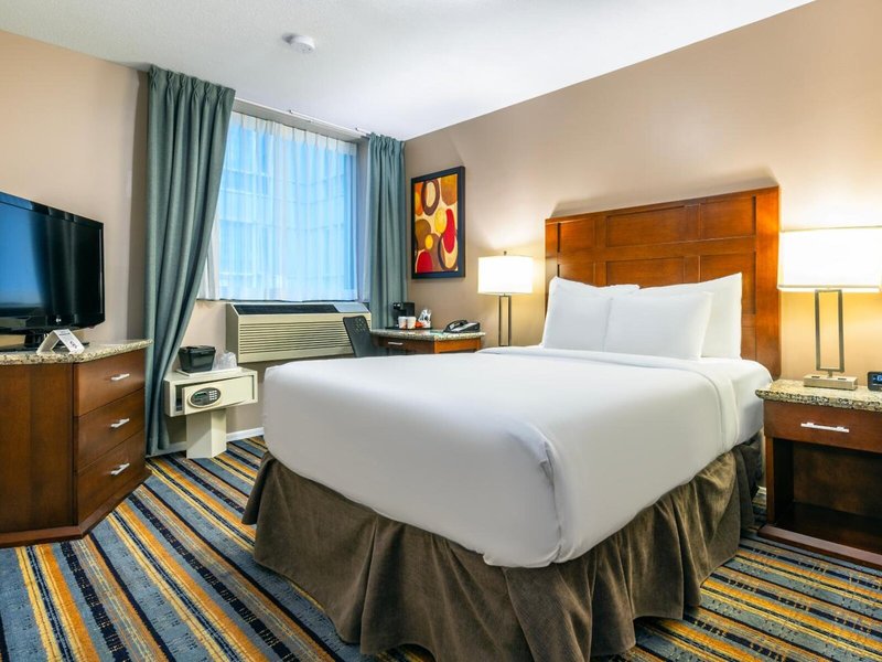 So wohnen Sie: Für angenehmes Raumklima in den Zimmern sorgen eine Klimaanlage und eine individuell steuerbare Heizung. Die mit Teppichböden ausgestatteten Zimmer verfügen über ein Doppelbett, ein Queensize-Bett, ein Kingsize-Bett oder ein Sofabett. Zustellbetten können angefordert werden. Außerdem sind ein Safe und ein Schreibtisch verfügbar. Auch ein Minikühlschrank und eine Tee-/Kaffeemaschine sind vorhanden. Ein Bügelset ist für den zusätzlichen Komfort der Gäste verfügbar. Darüber hinaus sind ein Telefon mit Direktwahl, ein TV-Gerät mit Satelliten-/Kabelempfang, ein Radio, ein Wecker und WiFi vorhanden. Im Badezimmer, mit einer Dusche und einer Badewanne ausgestattet, stehen für die Gäste ein Haartrockner und ein Telefon bereit. Für besonderen Komfort in den Badezimmern sorgen Kosmetikartikel. Außerdem sind rollstuhlgerechte Zimmer mit barrierefreiem Badezimmer buchbar. Die Unterbringung bietet Familien- und 116 Nichtraucherzimmer.