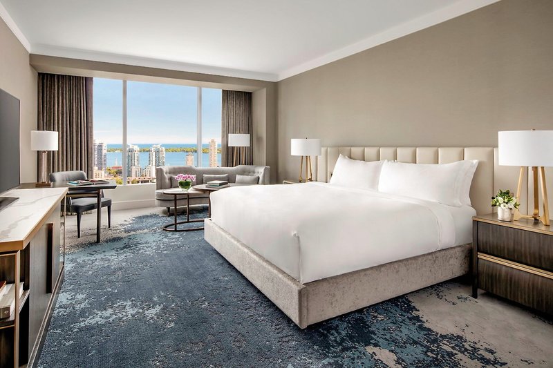 In der Nähe zum CN Tower und zum Theater District empfängt das Luxushotel seine Gäste im Herzen von Toronto. Mit beeindruckender Architektur und dem 53 Stockwerke hohen Tower reiht es sich in die Skyline der Stadt ein. Ein kulinarisches Erlebnis bietet das TOCA Restaurant. Hier werden feinste italienische Gerichte sowie Käse aus dem im Restaurant gelegenen Käseraum serviert. LANO ist das neue Café und Weinbar-Konzept, inspiriert von der norditalienischen Lebensart und dem Flair Mailands. Regionale Speisen werden im geschmackvoll eingerichteten Innenbereich der Epoch Bar & Kitchen Terrace gereicht. In urbanem Ambiente rundet die Ritz Bar das kulinarische Angebot mit kleinen Speisen sowie einer Vielzahl an Weinen und Cocktails ab. Zu den weiteren Annehmlichkeiten zählen Fitness-Center, das Spa My Blend by Clarins mit 16 Behandlungsräumen Anwendungen und Massagen (gegen Gebühr), Swimmingpool, Sauna und Dampfbad. Parken (gegen Gebühr). Der internationale Flughafen Toronto ist ca. 25 km entfernt.