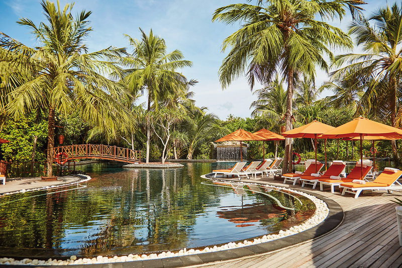 - All Inclusive: Frühstück (Buffet), Mittagessen (Buffet oder 3-Gänge-Menü), Abendessen (Buffet oder 3-Gänge-Menü), Getränke ganztägig kostenfrei (Softdrinks, Kaffee/Tee, Bier, Säfte, Milchshakes, Mocktails, Hauswein, Cocktails, Sekt, Spirituosen, Wasser), Minibar (Auffüllung täglich, Softdrinks, Bier, Hauswein, Wasser), Weihnachtsdinner, Silvesterdinner, 24 Stunden All Inclusive mit Getränken und Snacks in der Bar „Waters Edge“, Dine-around (ohne Teppanyaki), Eis im „La Cremeria“ (11-18 Uhr), 50 % Ermäßigung auf In-Villa-Dining (Mittag- und Abendessen), eine Stunde täglich Kajak, Stand-Up-Paddling; eine Stunde täglich Katamaran-Segeln oder Windsurfen (Lizenz erforderlich), 20 % Ermäßigung für zertifizierte Taucher auf ausgewählte Tauchaktivitäten, ein 10-minütiger Schnuppertauchgang mit Ausrüstung pro Person/Aufenthalt (nach Voranmeldung), ein lokaler Inselausflug, eine Golden Sunset Cruise und eine geführte Schnorcheltour im Nemo Park pro Person/Aufenthalt, eine Spa-Gesichtsbehandlung (30 Minuten) für Damen ab 15 Jahre (einmal pro Aufenthalt), 50 USD Guthaben für Spa-Behandlungen (60 Minuten) pro Erwachsenen/Aufenthalt und 2x pro Woche Yoga-Sitzungen