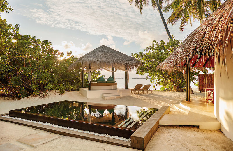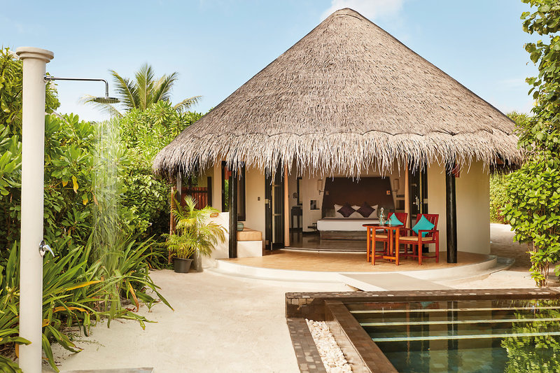 - 121-150 qm, Villa, freistehend, Strandlage, kombinierter Wohn-/Schlafraum, nach oben halb offenes Bad, Dusche, Whirlwanne, Außendusche, WC, Bademantel, Haartrockner, Klimaanlage, Ventilator, Minibar kostenpflichtig, Safe, TV, DVD-Player, WLAN, Wasserkocher, Kaffee/Tee, Terrasse (möbliert), direkter Strandzugang, Privatpool