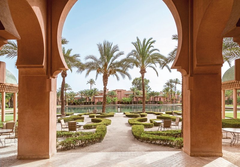 Amanjena bedeutet "Friedliches Paradies". Sein Name spiegelt wider, was dieses außergewöhnliche Resort seinen Gästen zu bieten hat – eine luxuriöse Oase der Ruhe und Harmonie in paradiesischer Lage. Das Anwesen ist wie ein märchenhafter Sultanspalast im maurischen Stil erbaut mit schattigen Innenhöfen, hohen Säulengängen und prächtigen Springbrunnen. Amanjena würdigt die Harmonie und Schönheit seiner Umgebung und das reiche kulturelle Erbe der Region. Die Zimmer und öffentlichen Bereiche wurden im Sommer 2015 renoviert. Das Resort der renommierten Aman Gruppe liegt ca. 4 km außerhalb von Marrakesch am Rande eines Palmen- und Olivenhains und in unmittelbarer Nachbarschaft des Amelkis-Golfplatzes. Mit 3 Restaurants, Bar mit Kaminecke, The Library – Bibliothek mit Kamin, beheizbarem Swimmingpool (10 x 33 m), Sonnenterrasse, weitläufiger Gartenanlage und großem Wasserbecken im Zentrum des Anwesens. Dazu ein erstklassiges Spa, Fitnessraum und eine Boutique. Der Flughafen Marrakesch ist ca. 12 km entfernt.